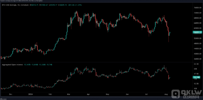 近期,Bitcoin持倉量(Open Interest)從7月29日的210億美元峰值下降至8月6日的150億美元以下,這表明交易者可能在采取保守策略以避免清算。與此同時(shí),8月5日的虧本出售Tokens數(shù)量創(chuàng)下紀(jì)錄,超過52億美元的Bitcoin在短時(shí)間內(nèi)被轉(zhuǎn)移。