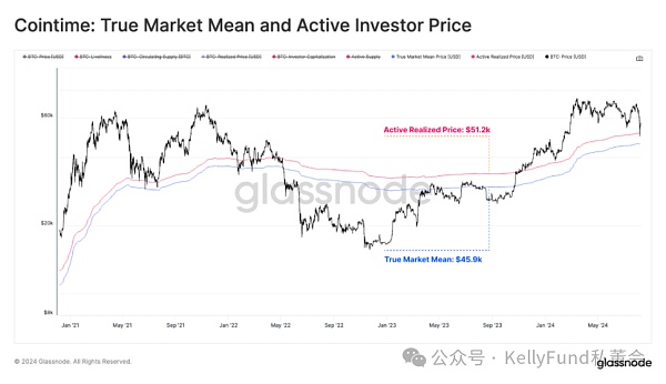 價格下跌導致了BTC現貨價格觸及了51,400美元的投資者活躍價格線,這是投資者心理轉變的重要閾值。
