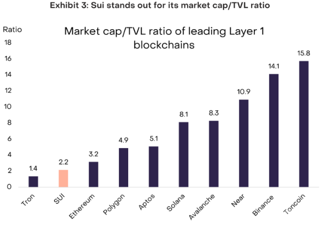 Sui的生態系統正迅速發展,支持Decentralization金融(DeFi)、Web 3.0及非同質化Tokens(NFTs)等多種應用。截至2024年7月31日,Sui的總鎖倉價值(TVL)達到8.3億美元,市場市值約為18億美元,TVL/市值比率為2.16,顯示出其被市場低估的潛力。