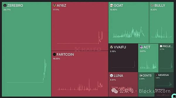 @0xzerebro在關(guān)注度方面領(lǐng)先,但其市值僅為GOAT的一半,盡管其關(guān)注度是GOAT的2.8倍。