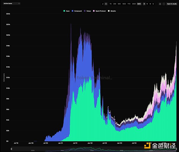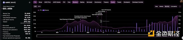 TVL超過216億美元。Aave的收入已經連續半年超過上一個牛市高峰期,具有強大的盈利能力。