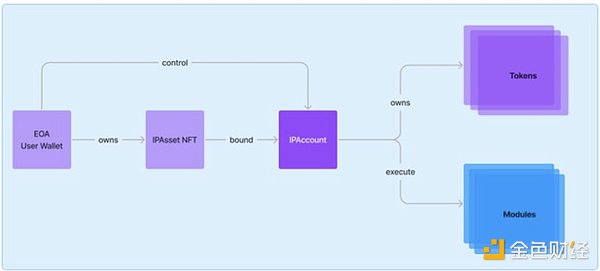 StoryProtocol將每個(gè)IP資產(chǎn)綁定到獨(dú)立的智能賬戶(TBA),賦予NFT動(dòng)態(tài)管理的能力,例如自動(dòng)生成授權(quán)Tokens或處理收益分配。簡(jiǎn)單來說,IP資產(chǎn)不僅僅是靜態(tài)的所有權(quán)證明,而是一個(gè)活躍的經(jīng)濟(jì)體。