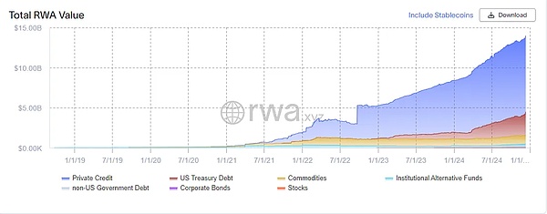 RWA總市值(不含穩定幣)