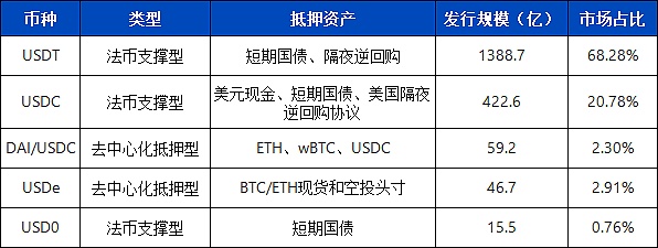 我們將上文提到諸如USDe、USD0等不依賴法幣支撐的穩定幣定義為“加密原生穩定幣”,這類穩定幣包括以主流Crypto如Bitcoin和Ethereum作為抵押的穩定幣,算法錨定價格的穩定幣,以及采用中性策略錨定價值的穩定幣等。