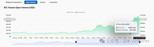 今年BTCETF通過后,北美BTCETF開始大規(guī)模增持。截至12月25號,北美ETF共持有119萬枚BTC左右,占所有BTC的5.66%。而剛推出時,僅有不到67萬枚,一年的時間大幅增持了52.56萬枚。
