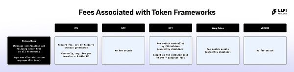 DAO治理的費用開關的存在意味著Tokens發(fā)行者可能需要向Tokens框架背后的互操作性協(xié)議(例如,OFT的LayerZero或WarpToken的Hyperlane)支付額外費用。這引入了對DAO治理的依賴,因為對費用開關的任何更改都會直接影響通過這些框架發(fā)行的Tokens,使它們受到DAO對費用結(jié)構(gòu)的決策影響。