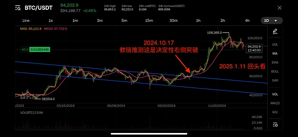 《大突破:BTC反冪律增長的另一種猜想》里的推測:「10月14號開啟的這根本周K線,很有機會成為今年初以來所構筑的下降通道的、向上的決定性突破。拉遠一些,視野放大,會看得更清楚?!壳埃覀円苍S正處于本輪快牛周期啟動的前夜。只差臨門一腳?!?/p>
