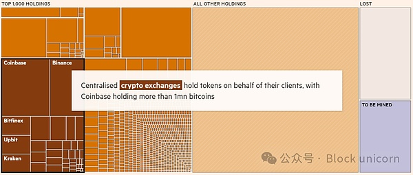 中心化Crypto交易所代表其客戶持有Tokens,Coinbase持有超過(guò)100萬(wàn)枚Bitcoin。