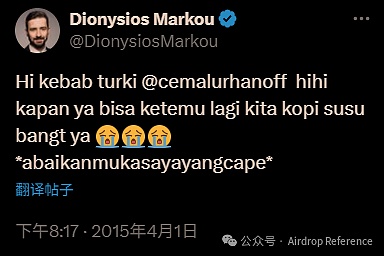回頭再看那個X(推特)賬號,雖然有藍色認證,但仔細觀察后發現,這個賬號早期竟然使用的是印尼語(見上圖),近期才突然改頭換面成了瑞典的加密媒體編輯身份。而且,它的粉絲數也少得可疑,只有774人——與CoinDesk真實編輯動輒數萬的粉絲規模根本不符。