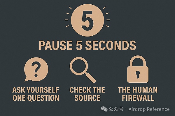 只要有人要求你輸入助記詞、點擊鏈接、下載軟件、或自稱權威身份時——你就強制停下,數5秒鐘。