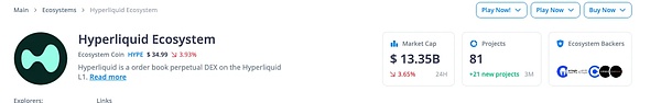 根據Cryptorank數據,近3個月已有21個新項目部署在Hyperliquid上,生態總項目數量超80個,涵蓋: