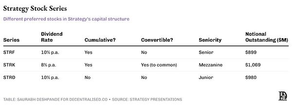 STRK:永久優先股,8%累積股息,中等優先級。未支付的股息會累積,必須在普通股東獲得任何回報之前全額支付。還包括轉換為普通股的權利。