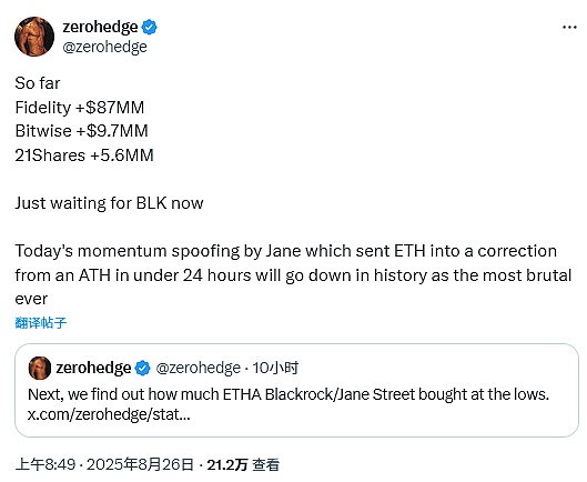 另一個引發關注的傳言涉及做市商JaneStreet的操作。有消息稱,該公司的"動量欺騙"操作導致Ethereum在創出歷史新高后不到24小時內陷入修正,被形容為"史上最殘酷"的操作之一。