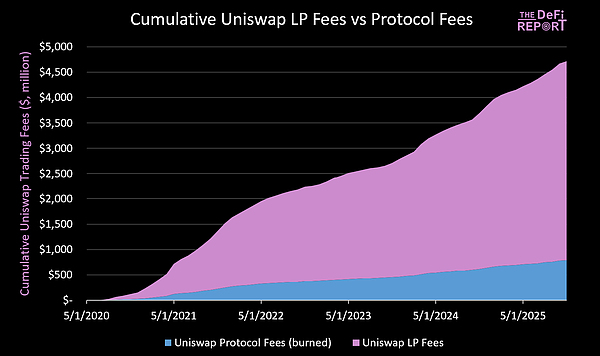 未來,大約16%的交易手續費收入將被銷毀。今年迄今為止,這將相當于銷毀價值1.36億美元的UNITokens(2050萬枚UNI)。此外,價值300萬美元的Unichain排序器費用也將被銷毀(45.2萬枚UNI)。