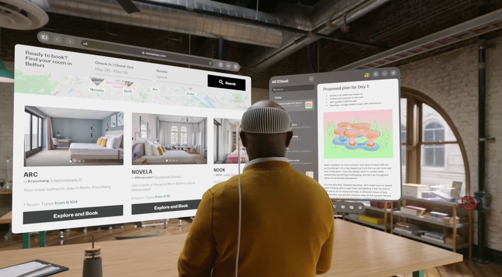 Apple Vision Pro的交互體驗簡單而直觀,用戶可以僅通過眼動追蹤和簡單手勢實現操作。蘋果公司還為這款頭顯開發了全新的MR操作系統visionOS,其設計風格類似于Big Sur后的macOS,采用微3D風格,用戶可以在物理環境中自由排列虛擬窗口和應用。