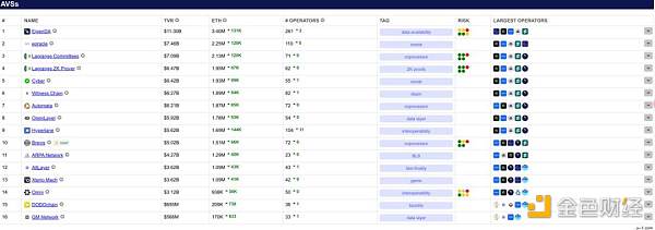 積極且深度參與 AVS,額外增加「一魚」(AVS 項目空投獎勵)。以 KelpDAO、Renzo 最為積極。這種策略屬于著眼于長遠,押注于明后年的超級大牛市的資產發行浪潮。目前,Eigenlayer 生態的 AVS 有 16 個,分布在 ZK 協處理器、AI+DePin、鏈抽象、Web3 游戲和社交等領域。
